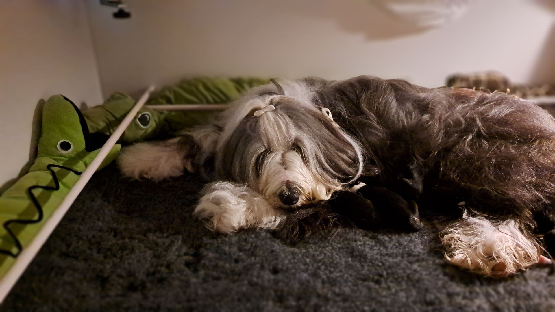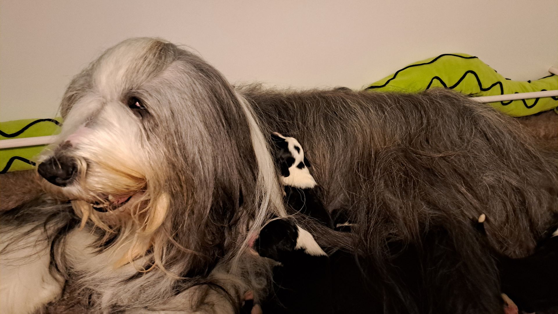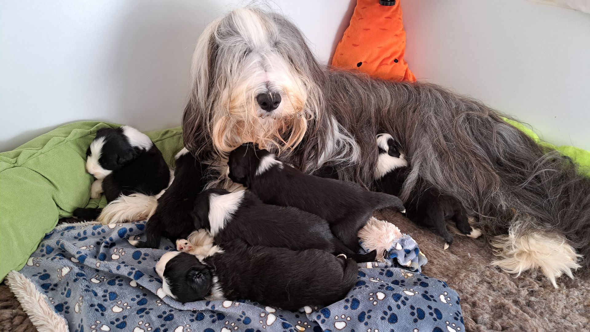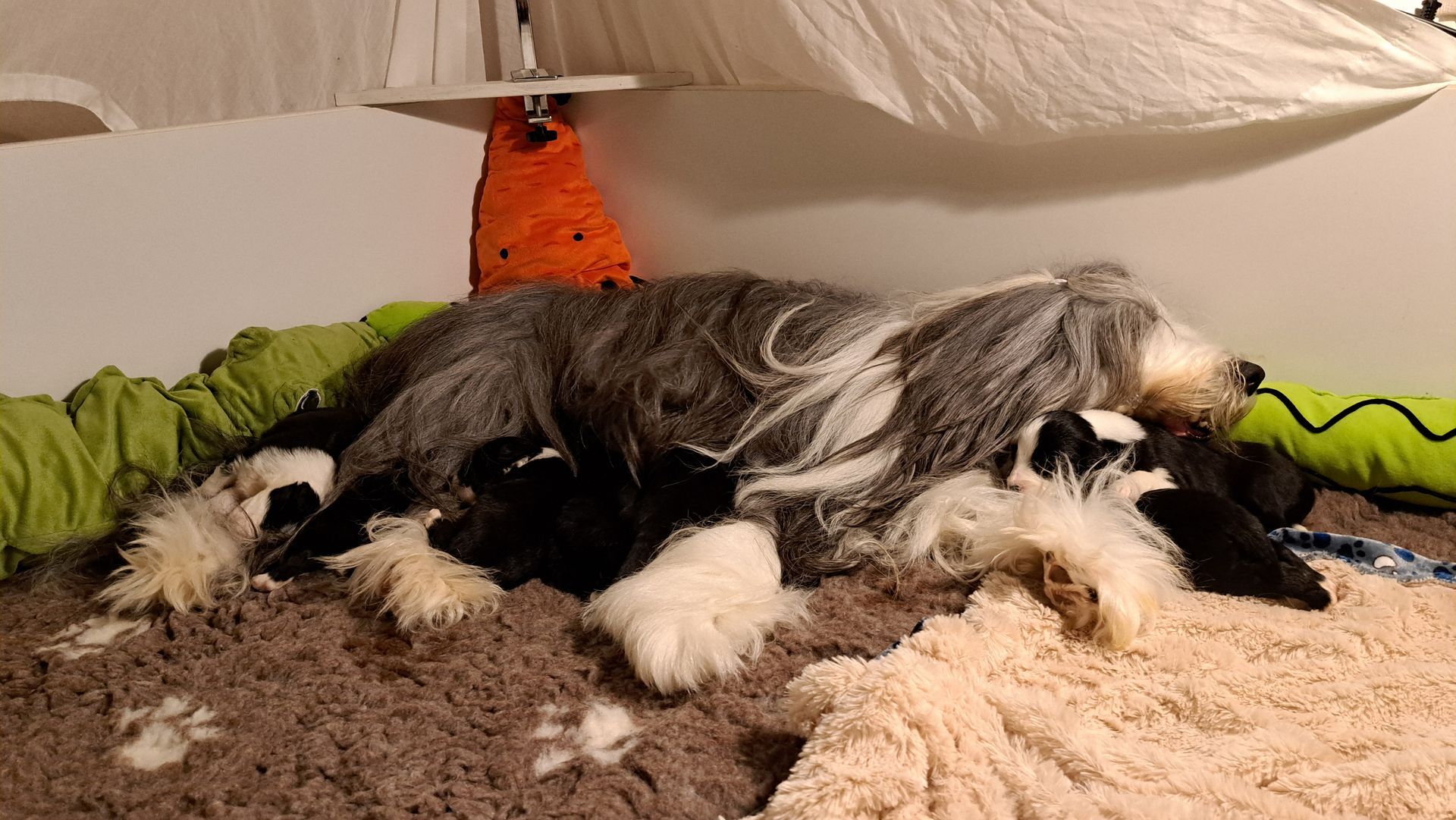 In dem größeren Welpengehege konnten wir die ersten Schritte zur Sauberkeit schonmal angehen, in dem die Beardiekinderchen ihr "Geschäft" in einem vorgegebenen Bereich erledigen.
