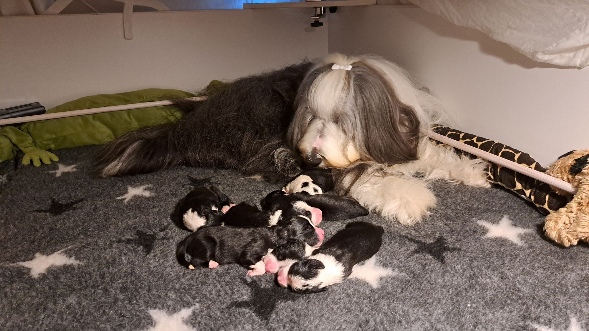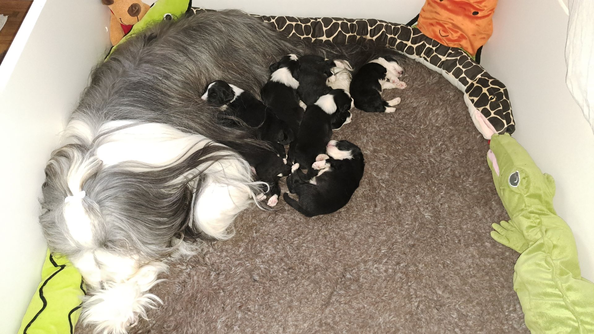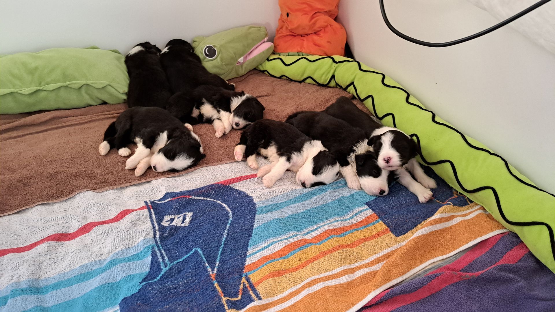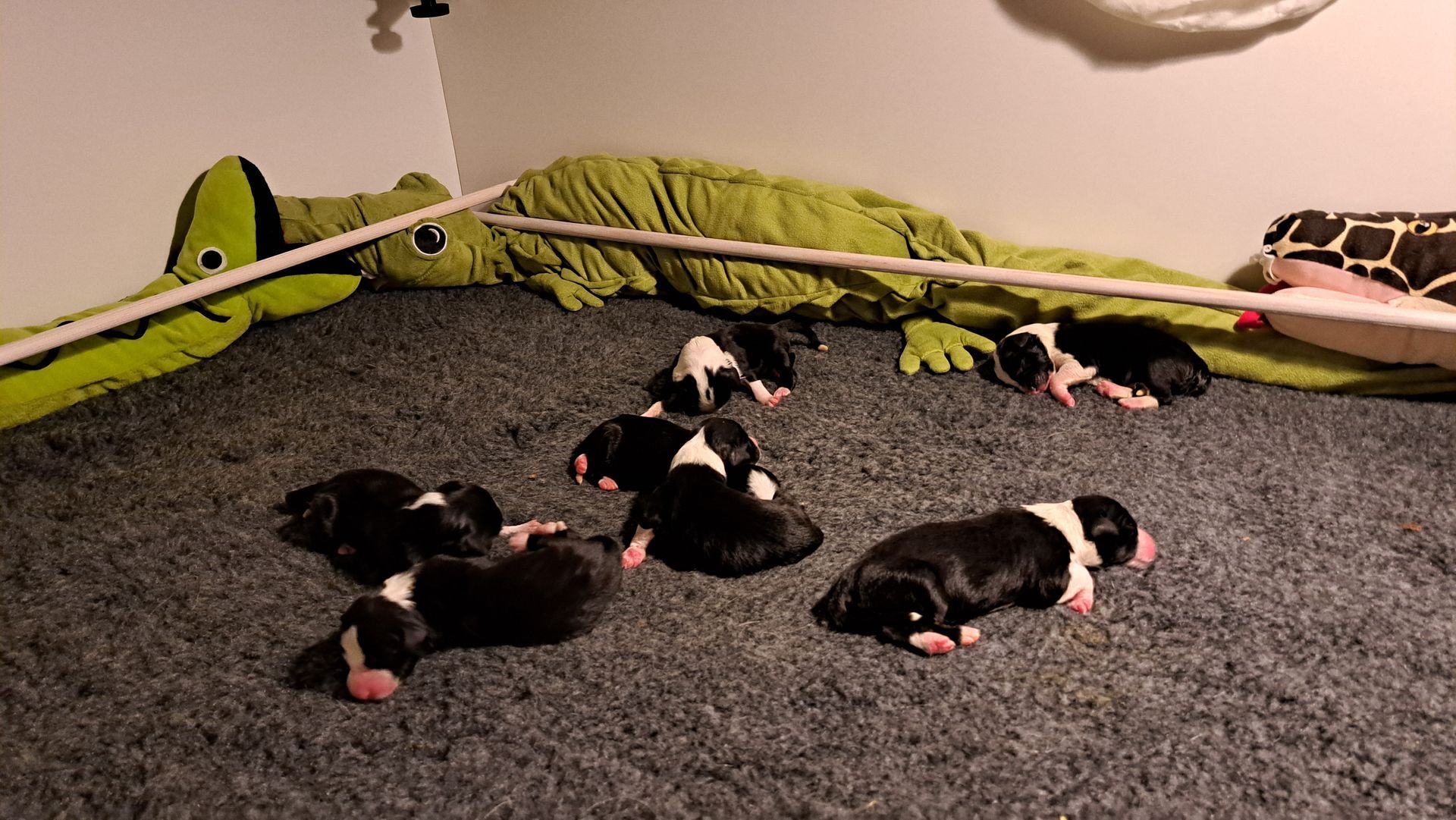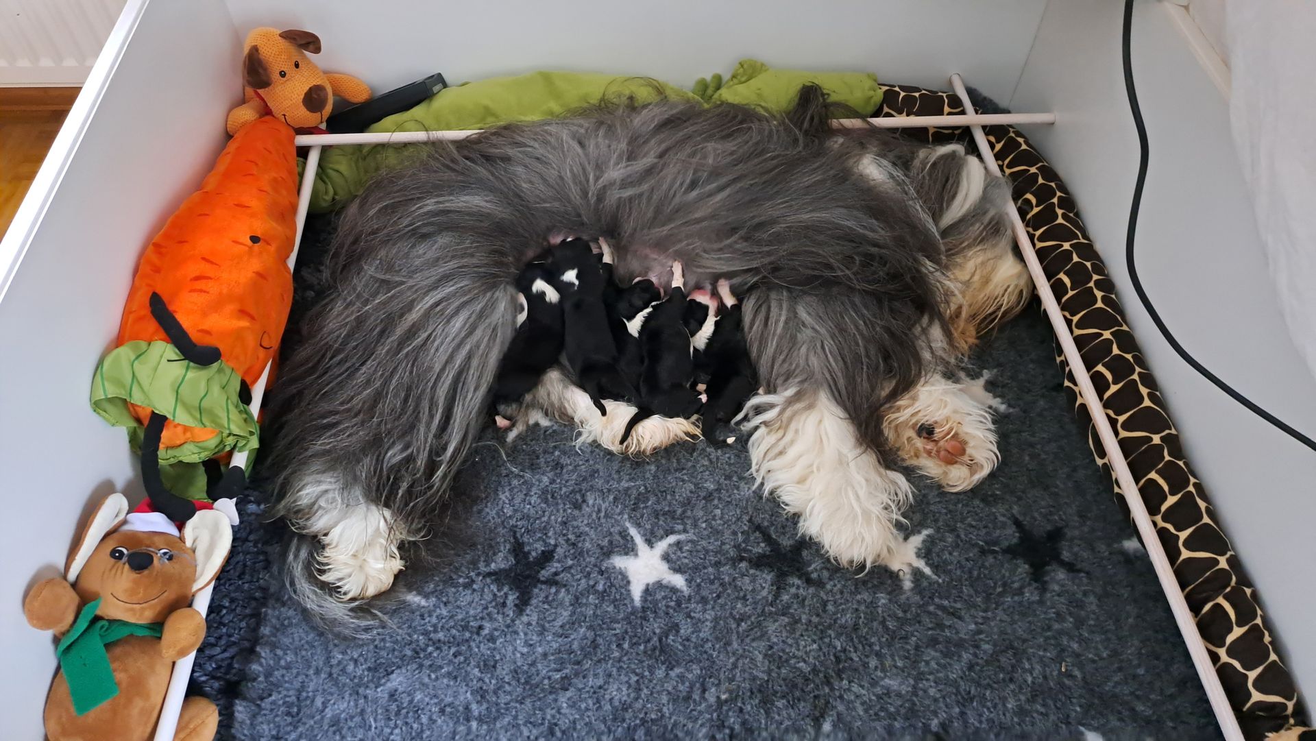 Da Ende dieser Woche langsam mehr Platz nötig ist, wird das Wohnzimmer mal wieder umgebaut und der Welpenauslauf vergrößert. Die nächste Entwurmung ist kommende Woche auch wieder dran. Es bleibt also spannend und abwechslungsreich.