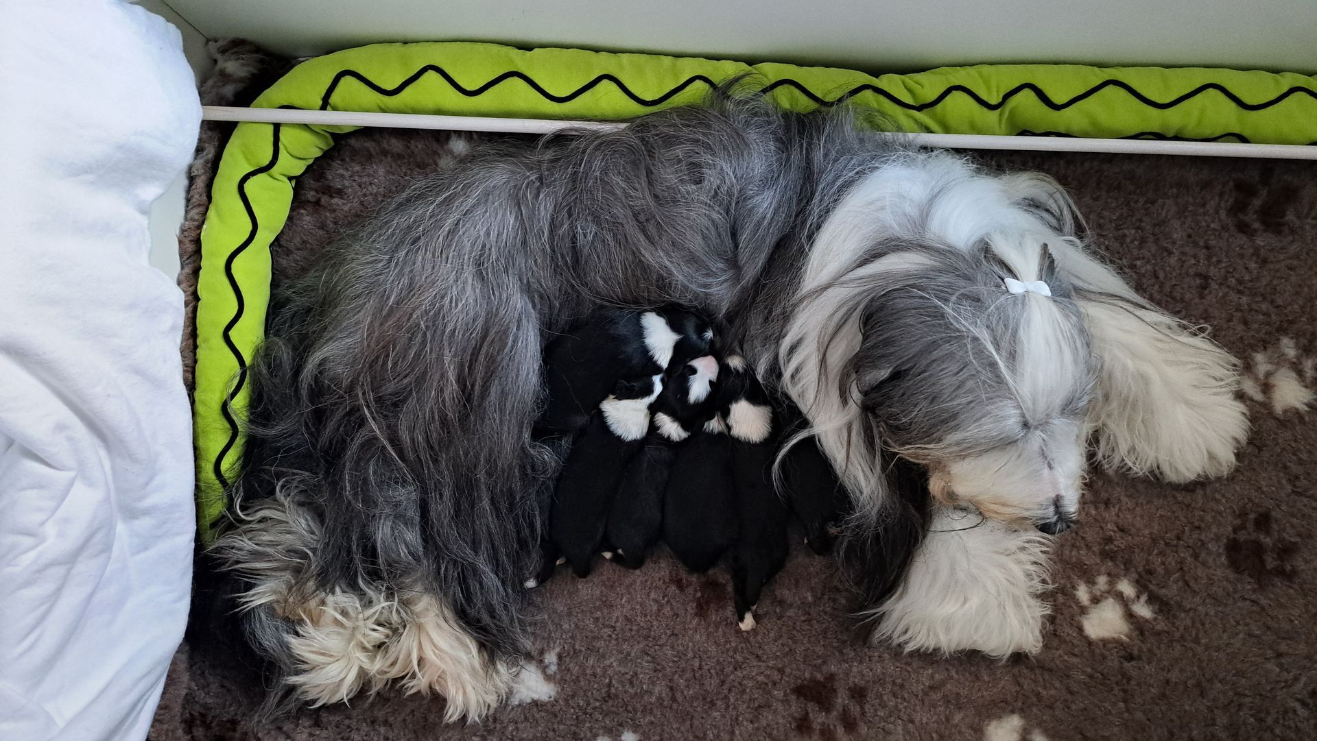 Die nächste Woche wird spannend: Umzug ins Wohnzimmer, Zufütterung, Welpenbesuch und viele neue Eindrücke...